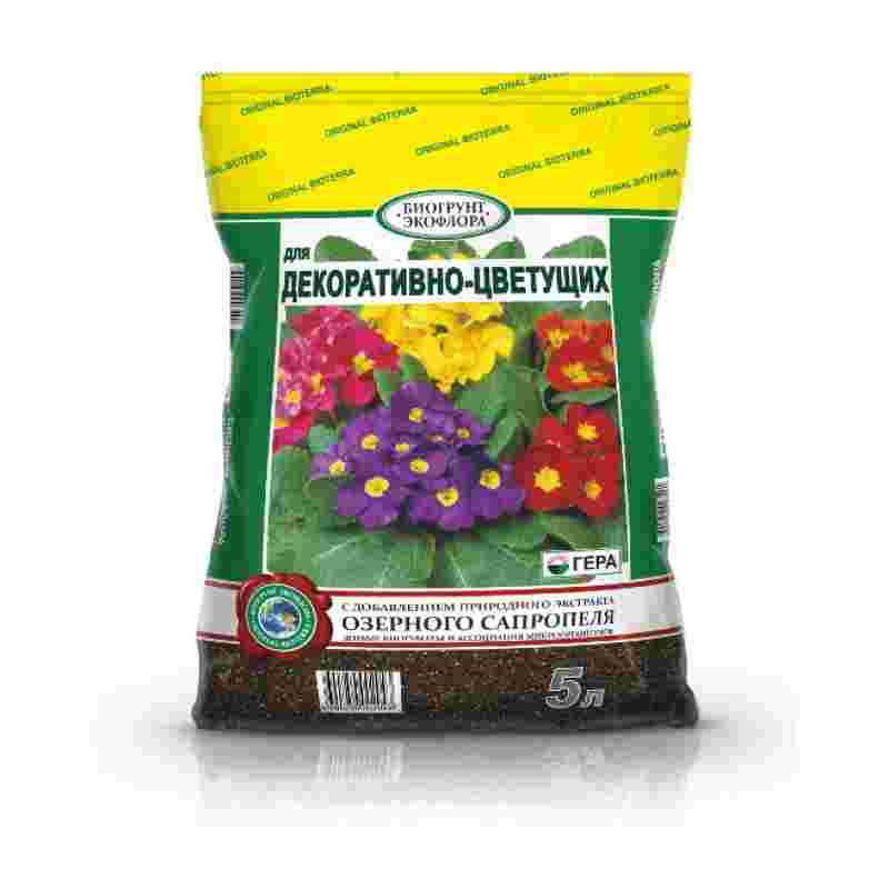 Полностью готовый к применению грунт для выращивания декоративно-цветущих однолетних и многолетних растений в открытом грунте (в качестве основной заправки гряд, клумб, альпийских горок и других цветников) и закрытом грунте (в теплице, зимнем саду, комнатном цветоводстве), таких как фуксии, бегонии, азалии, герани, маргаритки, бальзамины, гвоздики, астры, примулы, розы и др.; проращивания семян; выращивания цветочной рассады; выгонки луковичных растений; мульчирования (укрытия) почвы под растениями; посадки, пересадки, подсыпки или смены верхнего слоя почвы у растущих растений.Состав: высококачественная смесь торфов различной степени разложения, экстракт сапропеля, песок речной термически обработанный, ГЕРА ФлорГумат, комплексное минеральное удобрение, вермикулит, мука известняковая (доломитовая).