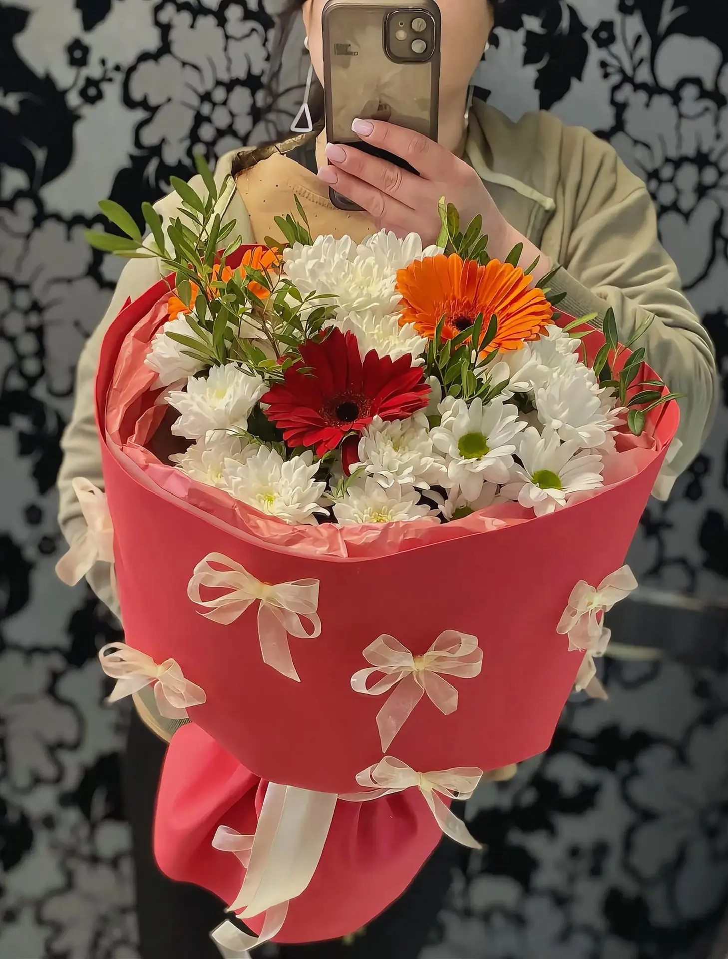 Каждый цветок уникален. Мы не можем гарантировать 100% совпадения Вашего букета и букета на фото. Это зависит от сезонности, наличия и природной индивидуальности каждого цветка. Но мы обязательно сохраним общую композицию и настроение букета!