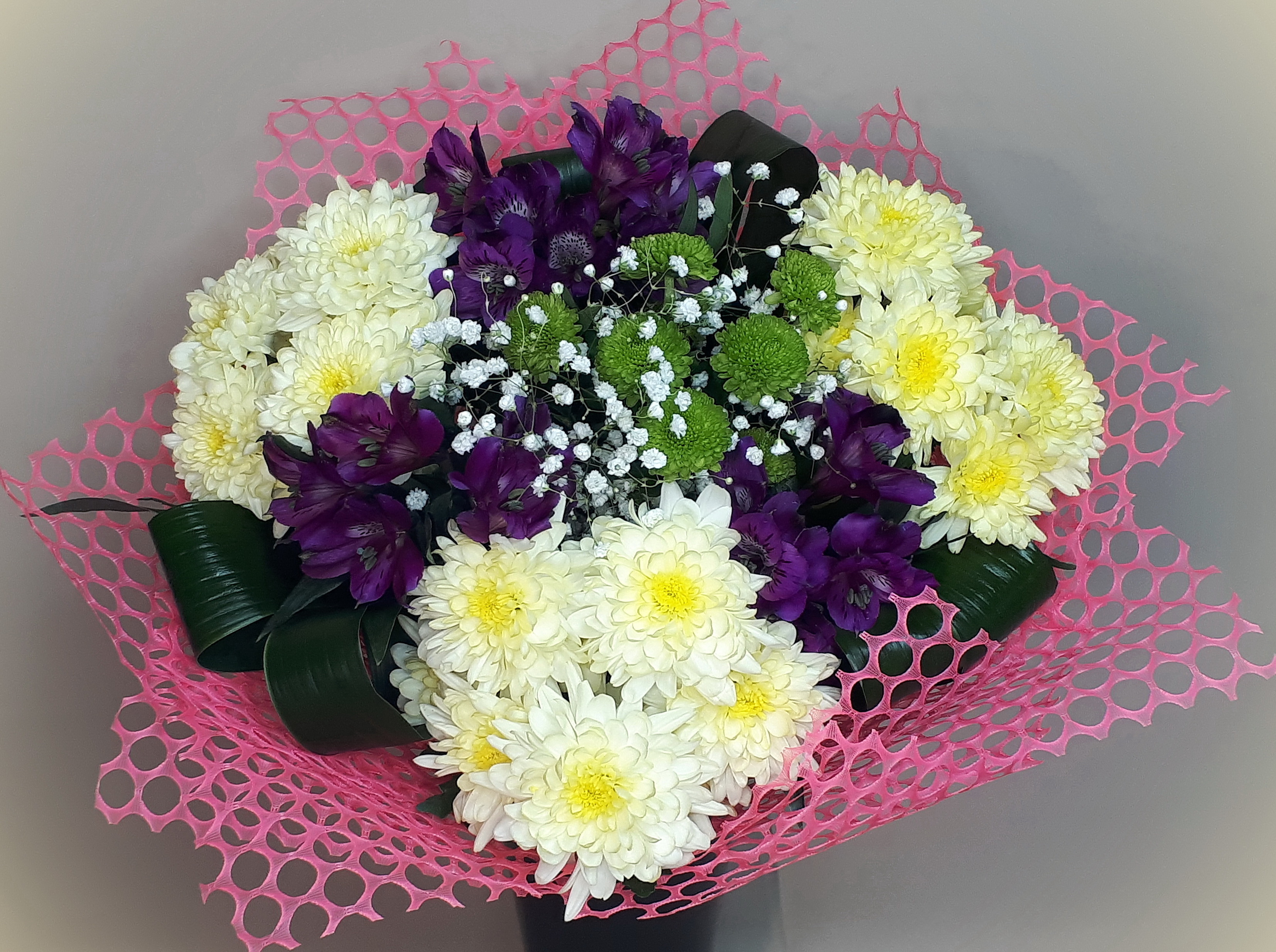 Каждый цветок уникален. Мы не можем гарантировать 100% совпадения Вашего букета и букета на фото. Это зависит от сезонности, наличия и природной индивидуальности каждого цветка. Но мы обязательно сохраним общую композицию и настроение букета!