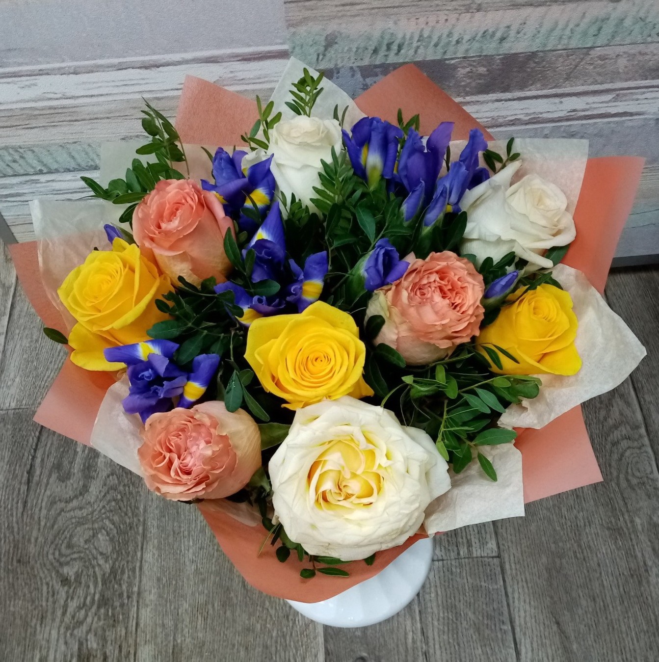 Каждый цветок уникален. Мы не можем гарантировать 100% совпадения Вашего букета и букета на фото. Это зависит от сезонности, наличия и природной индивидуальности каждого цветка. Но мы обязательно сохраним общую композицию и настроение букета!