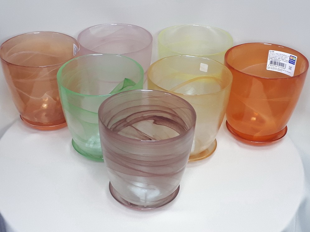 Горшок с поддоном №3 Цветное стекло в ассорт.