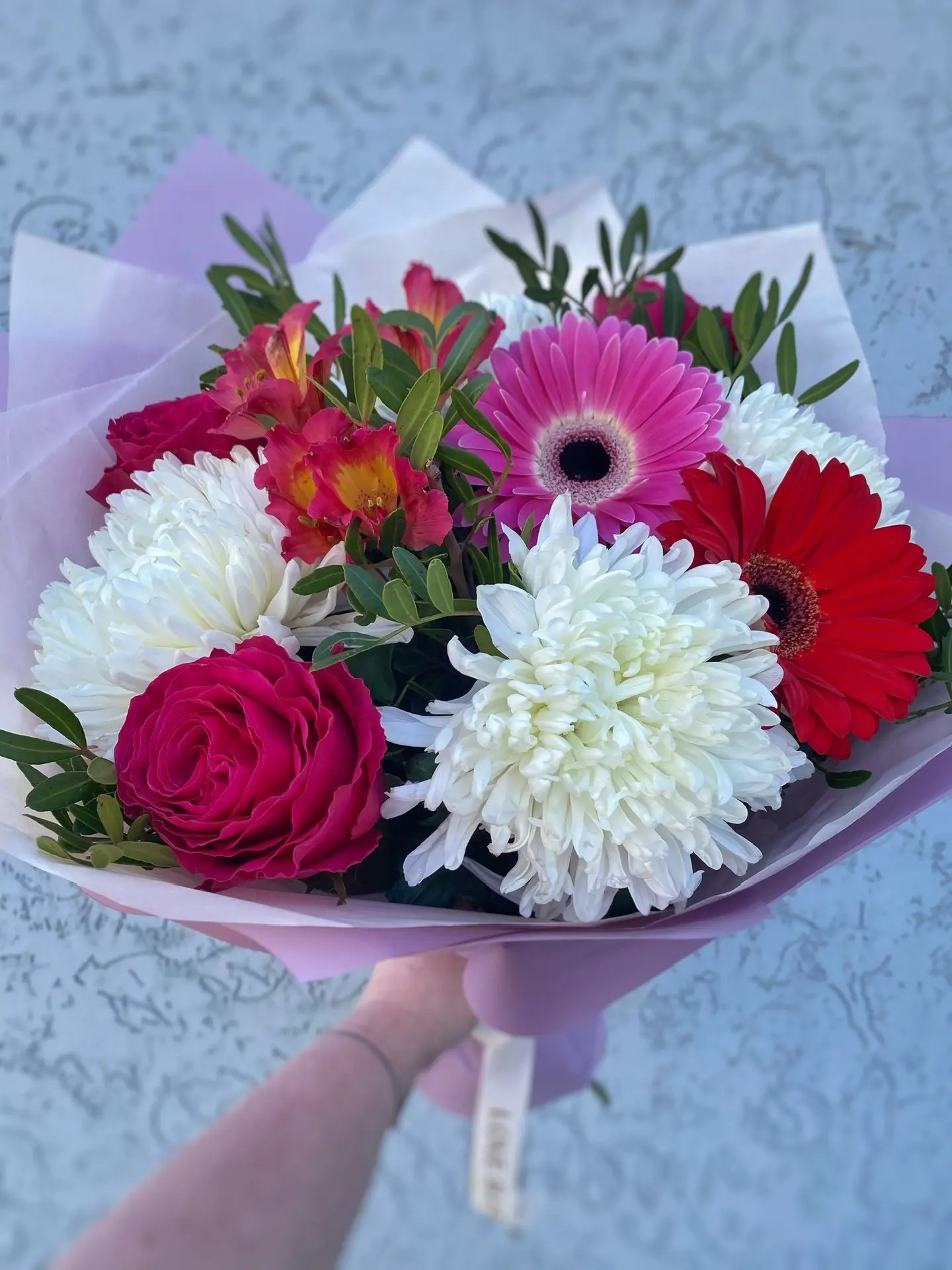Каждый цветок уникален. Мы не можем гарантировать 100% совпадения Вашего букета и букета на фото. Это зависит от сезонности, наличия и природной индивидуальности каждого цветка. Но мы обязательно сохраним общую композицию и настроение букета!